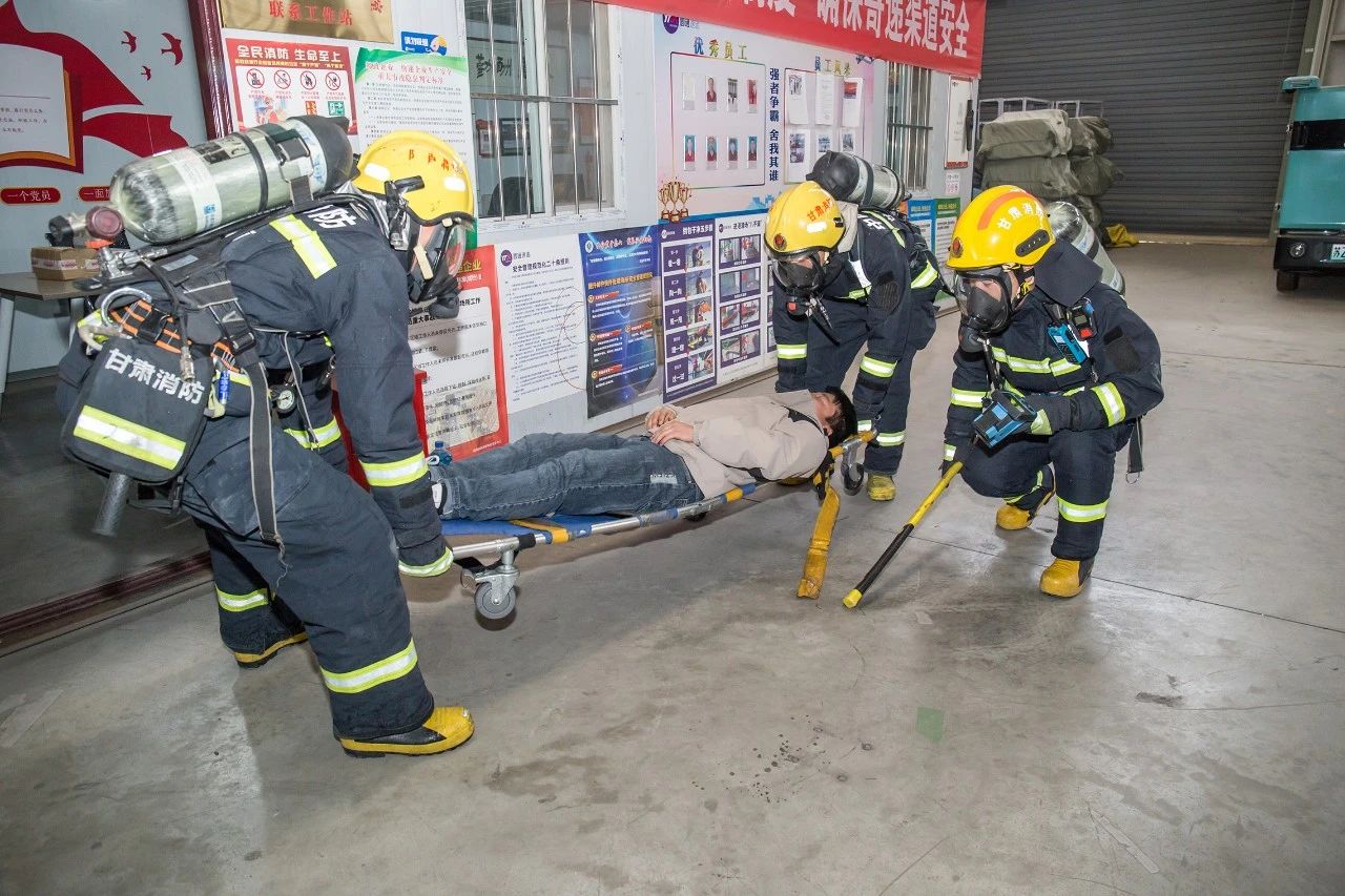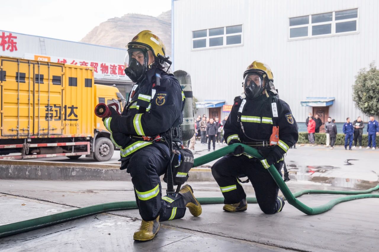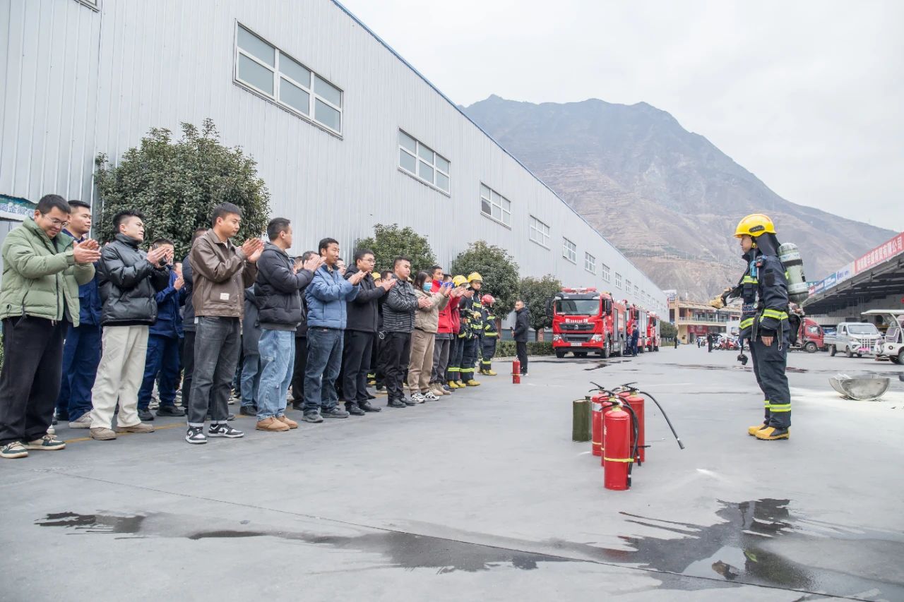与此同时,武都区消防救援大队接警后迅速抵达现场,与园区消防队员密切配合,利用专业消防设备有效控制火势,并成功将其扑灭,整个演练过程紧张有序,双方协作紧密,达到了预期的效果。
